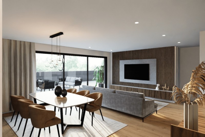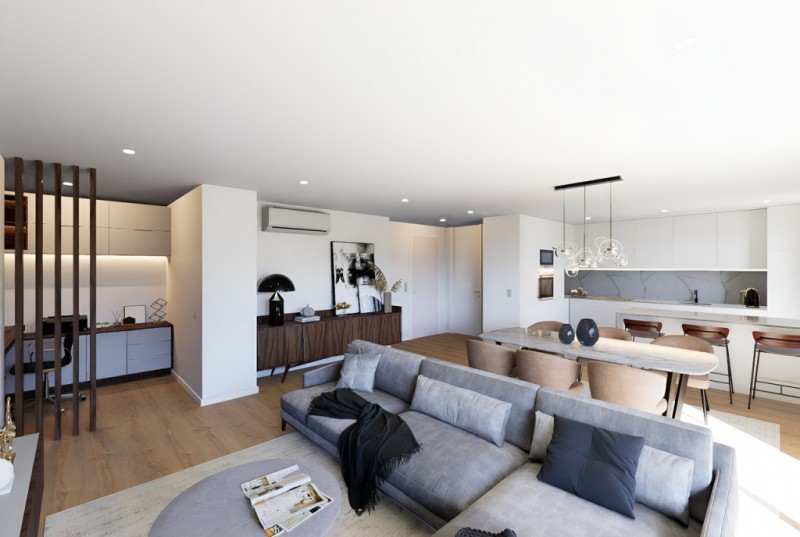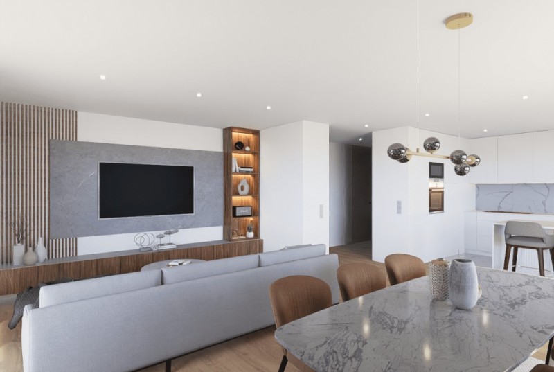 Os novos apartamentos foram cuidadosamente projetados para tirar maior partido do lazer e convívio familiar, integrando espaços amplos em open space, onde a luminosidade natural se funde com os acabamentos intemporais e de qualidade.